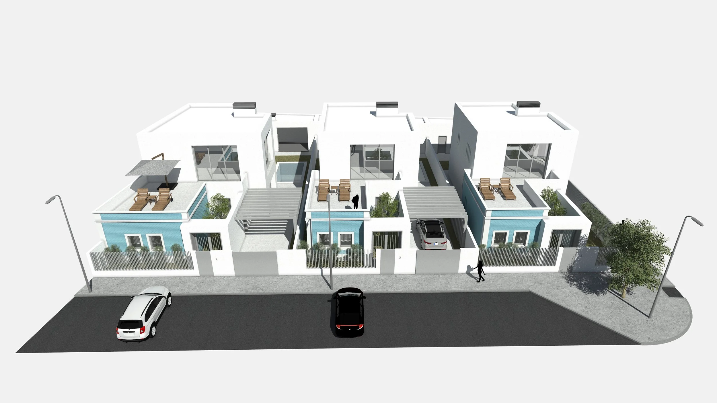O projeto destaca-se pela simbiose entre a arquitetura tradicional com a introdução do azulejo na fachada e a arquitetura contemporânea onde predominam os espaços amplos com grande luminosidade e linhas minimalistas. Destacamos ainda os terraços e jardim.